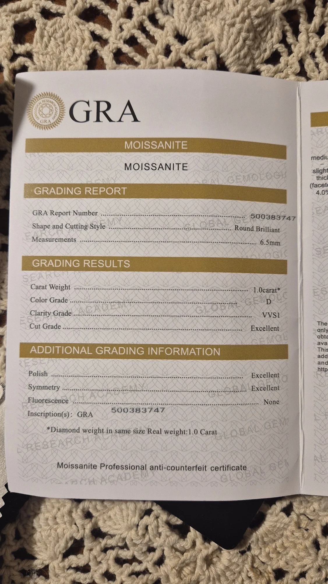 Echtheitsgarantie: Bestätigter Diamant-Test und inklusive offizieller GRA-Zertifizierung.
